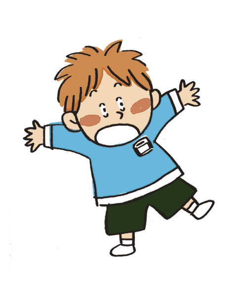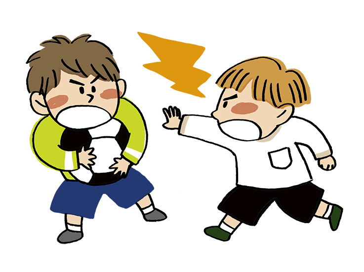 シンプルな線とはっきりとした色で描かれた子どものイラスト。男の子が驚いている シンプルな線とはっきりとした色で描かれた子どものイラスト。男の子二人がサッカーボールを取り合ってケンカ