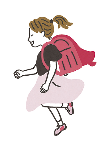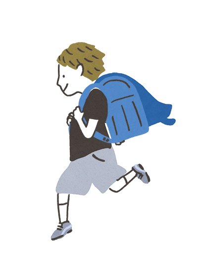 はっきりとした線とカラフルな色で着色された男の子のイラスト。小学生がランドセルを背負って走っている はっきりとした線とカラフルな色で着色された女の子のイラスト。小学生がランドセルを背負って走っている