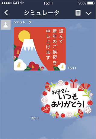 年賀状、新年の挨拶、寒中お見舞い、バレンタイン、母の日、父の日、暑中お見舞い、敬老の日、ハロウィン、クリスマス、年末の挨拶など、季節の行事のスタンプです。