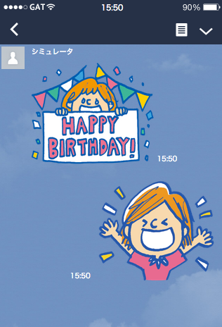 お誕生日をお祝いできるスタンプがたくさん!女の子、男の子、犬、猫、ケーキ、プレゼントなど色々なイラストがあるので、いっぱい使って下さい。