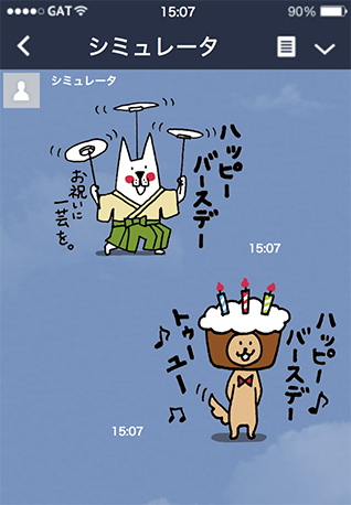 お誕生日をメッセージ付きのスタンプでお祝い!定番ものから面白いメッセージものも。犬、猫たちがお祝いします。二十歳、三十路、還暦など、節目のお祝いにも是非★