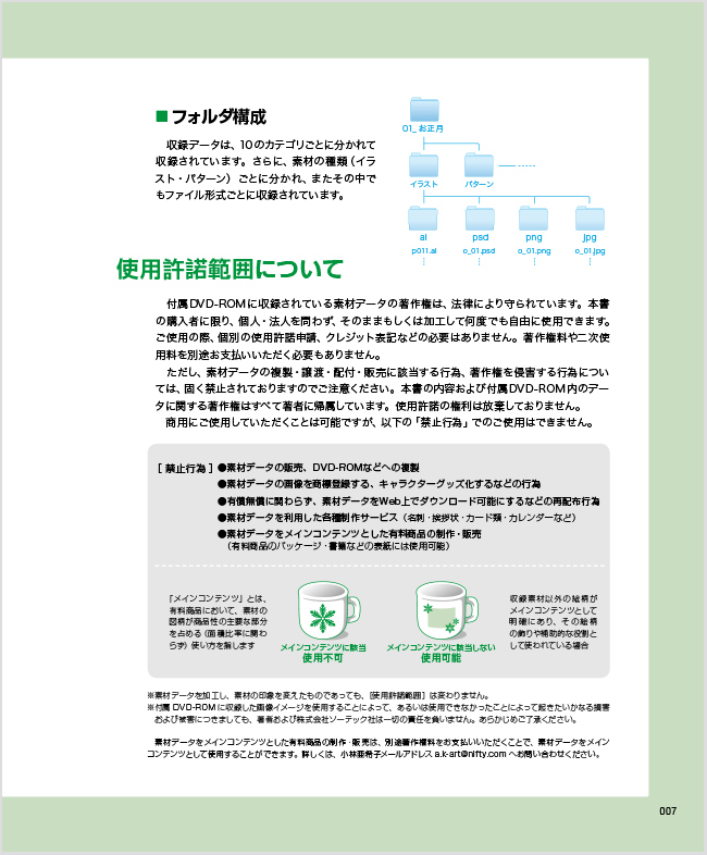 なかなかデザインがまとまらない、少し紙面が寂しい、イラストを使いたいけど予算がないなどの様々な問題に、少しでも本書の素材が役に立ちましたら幸いです。